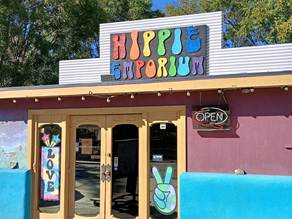 Caption – The Hippie Emporium where you can find tie-dye clothing, jewelry, incense, herbs, glow in the dark art, and curated bohemian accessories